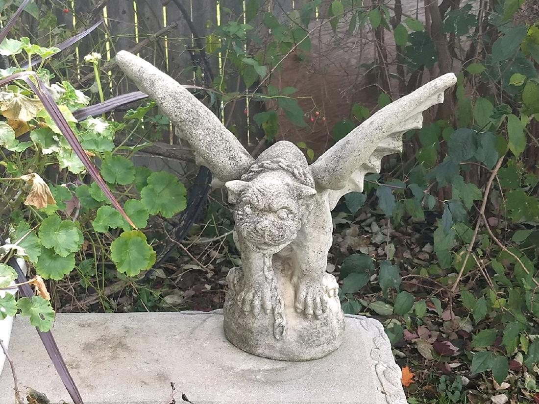 Large 3 d statue of a gargoyle with its wing expanded is 21 tall and 19 in wide span weight 60 lbs. Will look amazing on any property a must for garden gargoyle lovers outdoor garden statue he is chained to a square concrete post back yard art lawn ornaments concrete gargoyle statue. Find the perfect patio furniture backyard decor at hayneedle where you can buy online while you explore our room designs and curated looks for tips ideas inspiration to help you along the way. No chain can restrain them or their spirits or their unique artistry can be seen in the gargoyles.