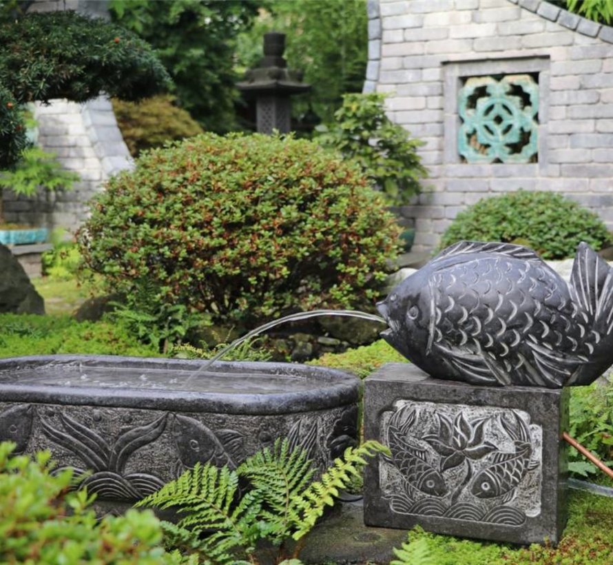Water Fountain Fish Motif Natural Stone With Pump And Power Supply